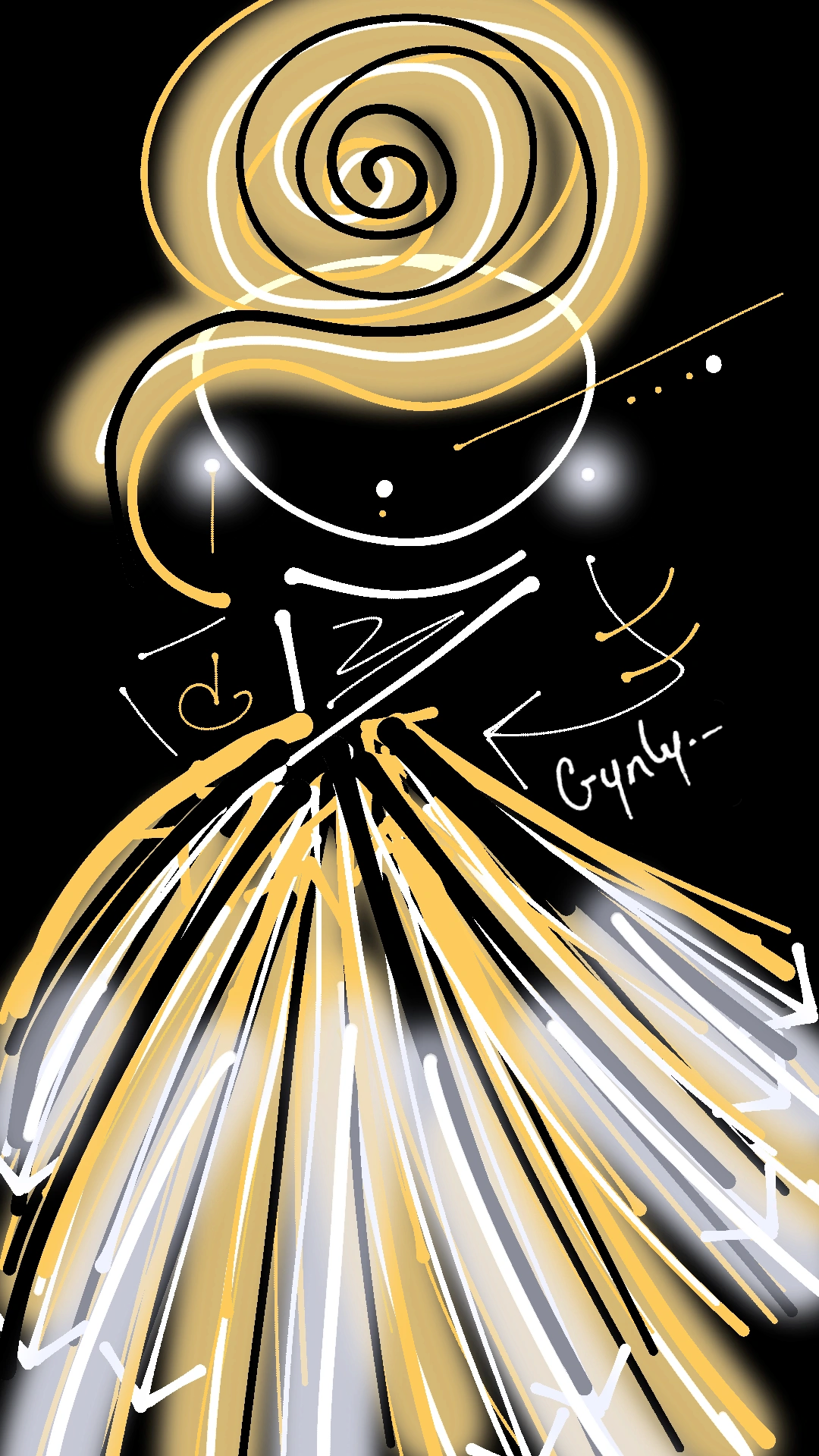 Por el video anterior recuerdo que este garabato nació por la ilusión de la inspiración del vestido amarillo de Paloma de la Cruz pero descarte hacerlo e hice una ilustración libre, ya que lo que deseaba era seguir con la meta de publicar los garabatos diarios.🤗