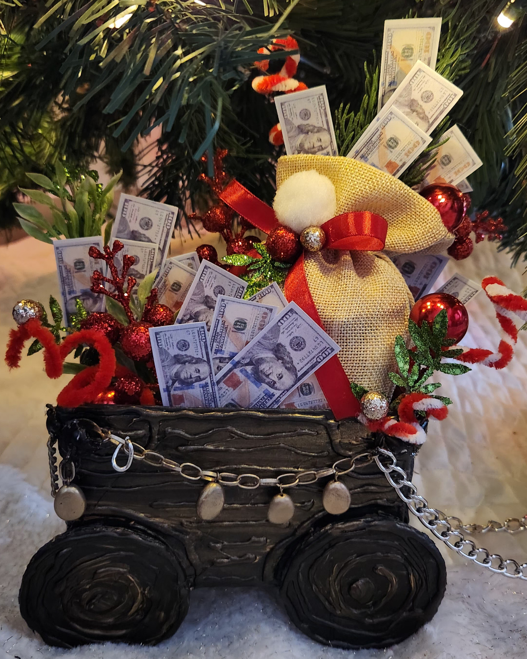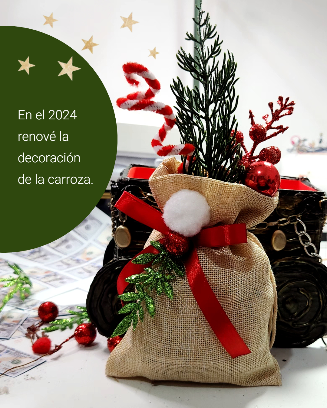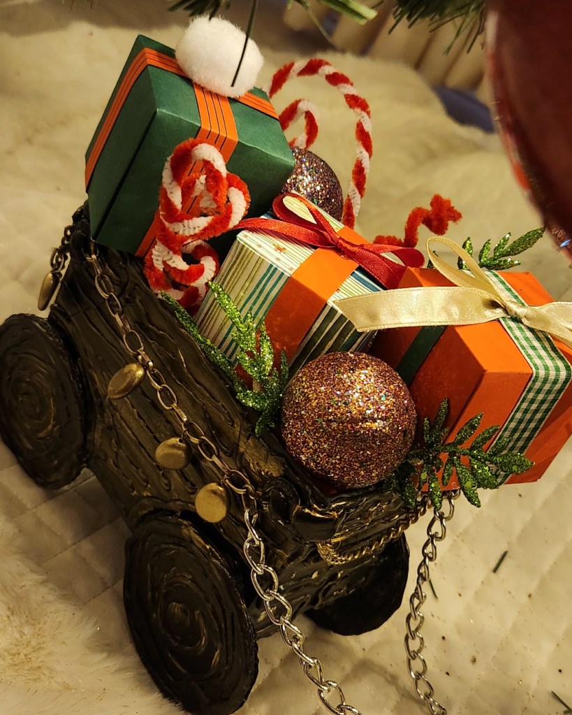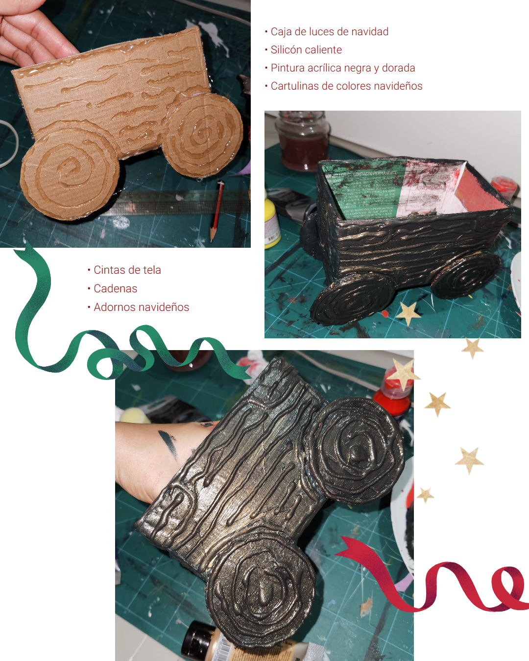 Empiezo con esta carroza que hice con los materiales que están debajo para decorar el pie del árbol.